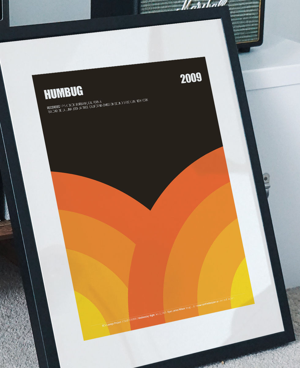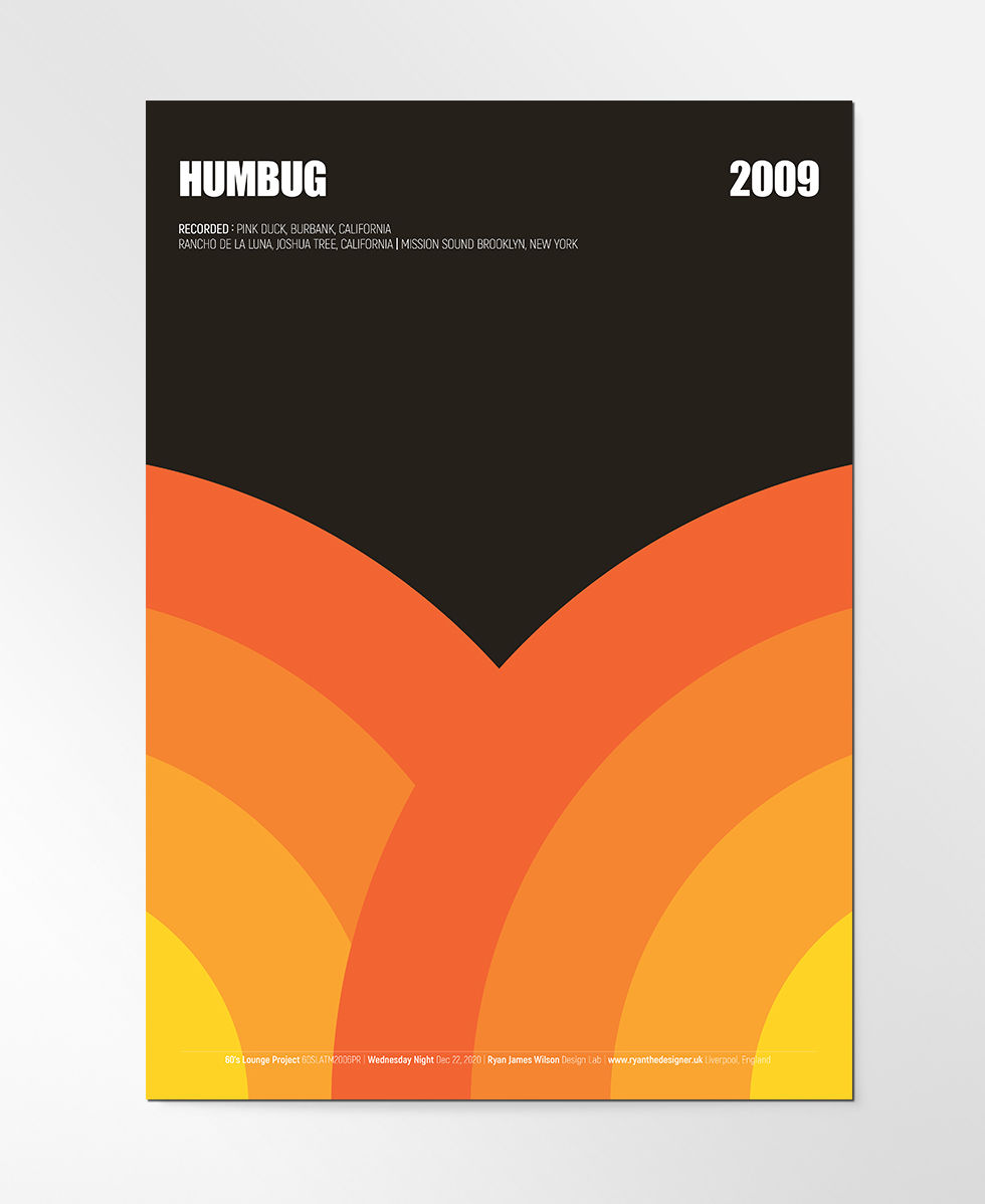 Celebrating the Sheffield band fronted by Alex Turners 2009 album Humbug in a modernist style.